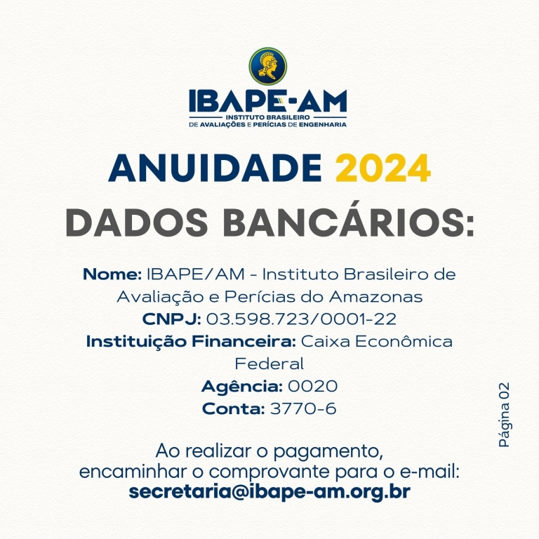 Anuidade 2024 do Instituto Brasileiro de Avaliações e Perícias de Engenharia - IBAPE/AM