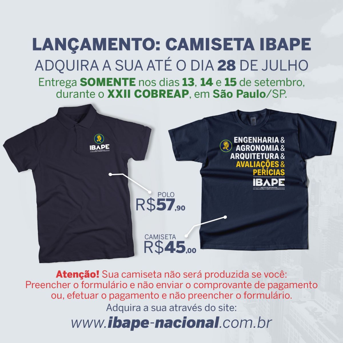 Por ocasião do XXII Cobreap, O IBAPE fará o lançamento de duas camisetas.
